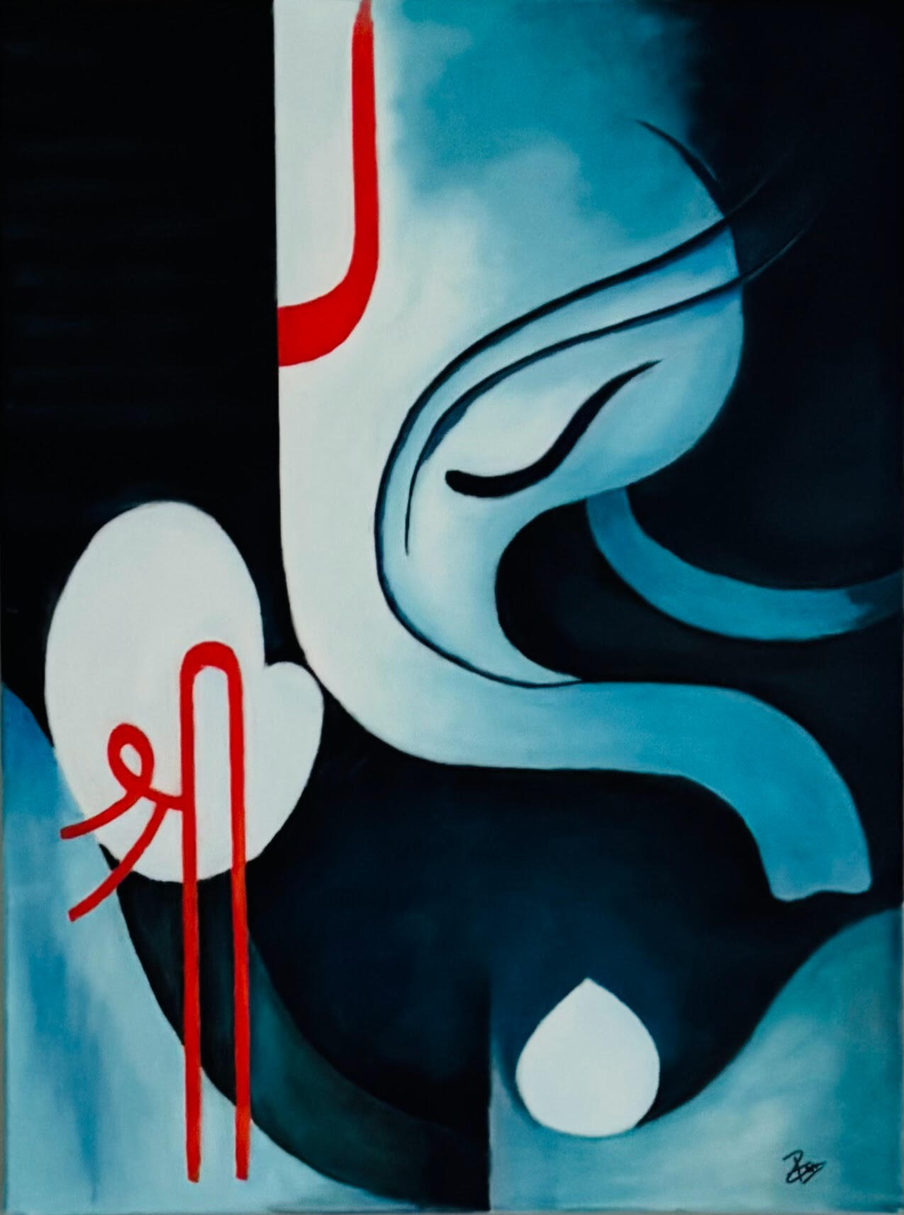 A contemporary interpretation of Ganesha, blending traditional symbolism with modern artistic expression. The painting explores form, color, and movement while honoring the timeless presence of the remover of obstacles.Oil on Canvas 18x24 in