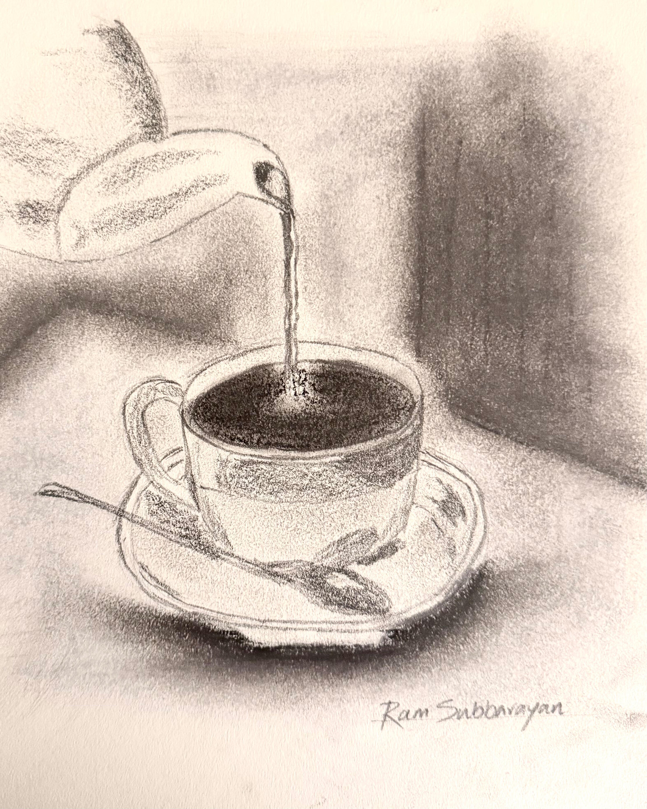 Ram V Subbarayan was born in Tamil Nadu, India, and grew up in Bangalore, where an early love for the outdoors and observation of everyday life shaped his creative outlook. During his school years, he first explored painting through watercolors, developing a fascination with color, light, and form.