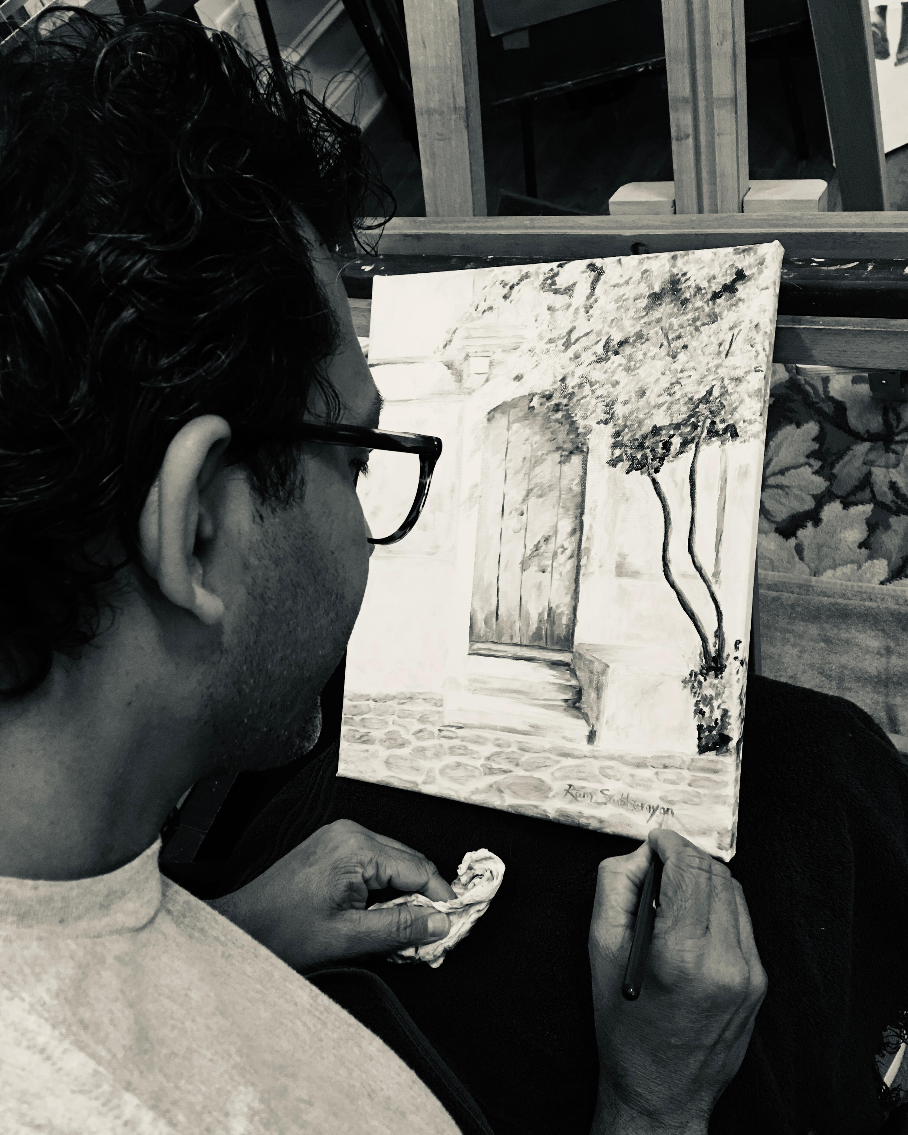 His work is inspired by the dramatic use of light and shadow seen in the works of Caravaggio and the Renaissance masters, including Michelangelo, as well as the expressive color and atmosphere of the Impressionists, particularly Claude Monet. Through his paintings, Ram explores quiet moments, architecture, and everyday scenes, seeking to capture the interplay of light, texture, and mood.